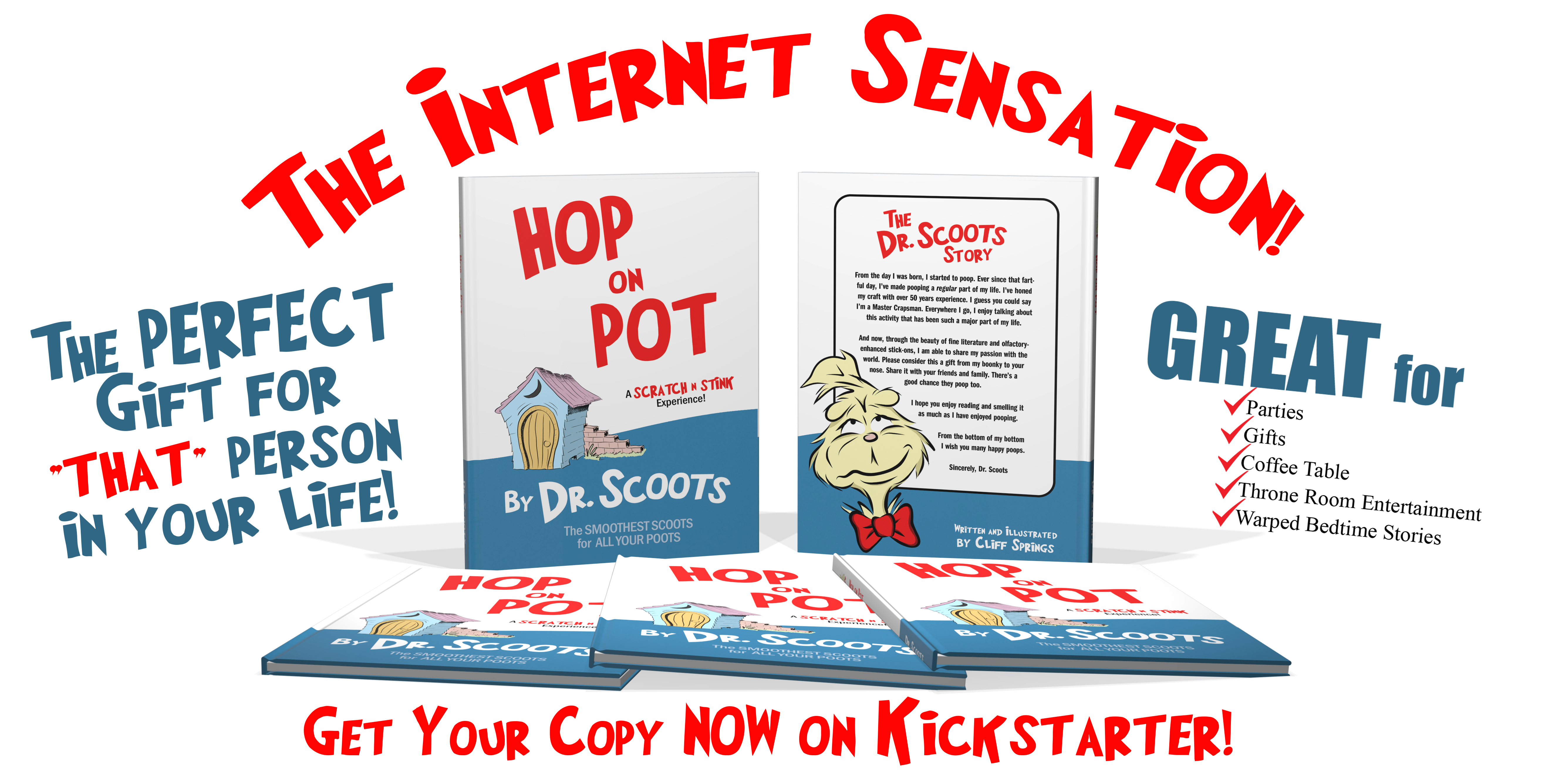 DISCLAIMER: This site and this book are in no way affiliated with Dr. Seuss or related entities. This book is intended only as parody in affectionately poking fun at various elements of many Dr. Seuss classics.